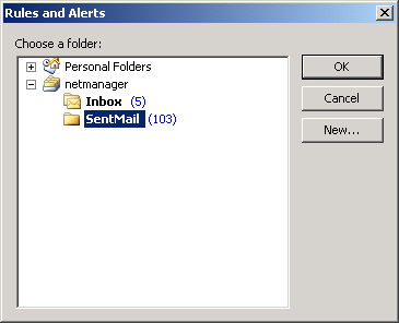 After clicking on "specified", a window headed "Choose a folder:" will open. Locate your SentMail folder on your new account. If you have not sent any mail yet with Webmail, you can create a new account (call it SentMail - this is case-sensitive). Click on OK when you have chosen the correct mail folder.