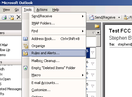 To ensure that your sent mail goes into the SentMail folder on the NetManager, you will need to go through a further series of steps. Unfortunately, Outlook does not make this job very simple.Choose "Rules and Alerts..." from the Tools menu.