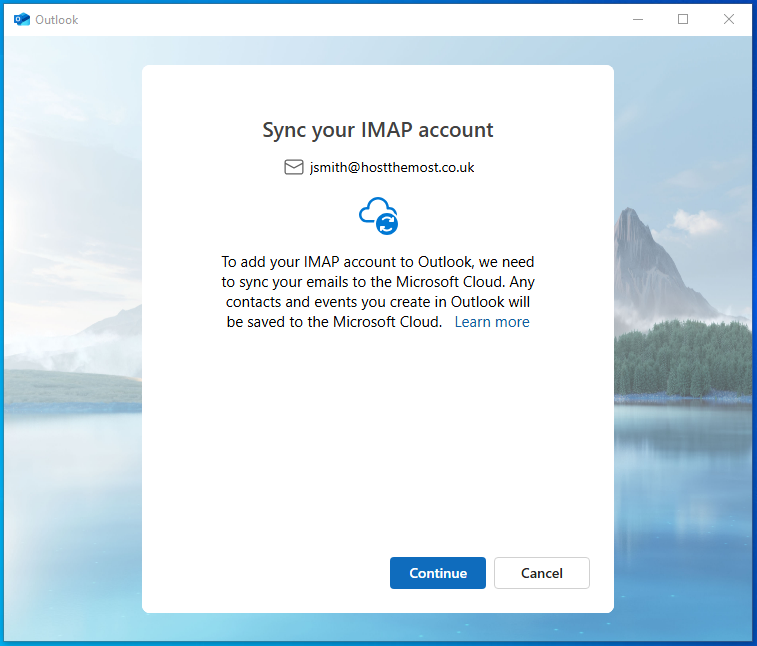 Take note of the warning that all your emails will now be sent to Microsoft's Cloud, not held privately on your machine.