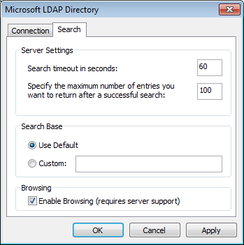 - Click on the Search tab and tick the Enable Browsing (requires server support) box. Click OK: